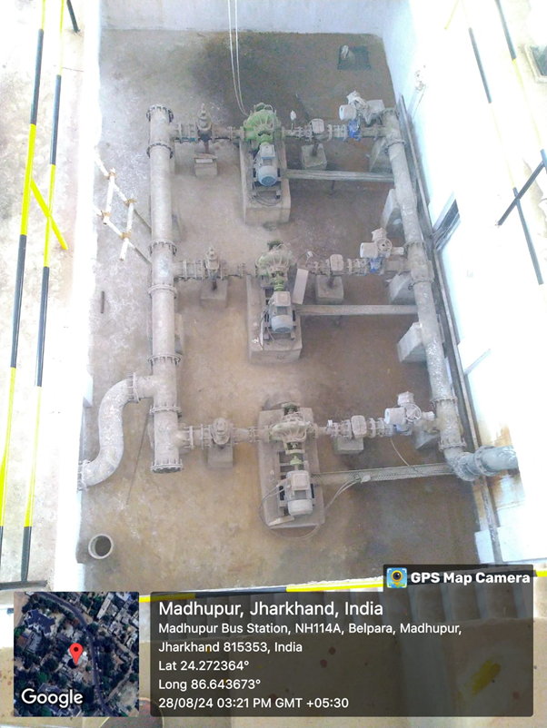 | Scope of Work | Detailed survey, design & drawing and construction of 2 RCC Infiltration well/Intake well: Zone-1 (8.25 MLD), with 8.0m Inner dia. and; Zone-2 (4.84 MLD), with 7.30m Inner dia.; & RCC Sump with Pump House; WTP (conventional)- 10MLD, (Renovation of WTP (conventional)- 5MLD up-gradation of civil, electrical and SCADA required as per actual site condition), Elevated Service Reservoirs: (i)1.4ML, 22 m staging (Zone – 1)- 2Nos; (ii) 1.2ML, 21 m staging (Zone -2)- 1No; Supplying and laying clear water rising main & Distribution Network, House service connection, Boundary wall, Staff quarters, Supplying and installation of V.T. pump and Centrifugal pump, Electric connection, Installation of SCADA etc, all complete for Madhupur Water Supply Scheme, on turnkey basis and Carrying out Operation and Maintenance of works for Five years after construction, including cost of all supervisory staff, material, equipment, electrical power supply, consumables, establishment, maintenance & repair, chemicals etc., all complete for Madhupur Water Supply Scheme. |