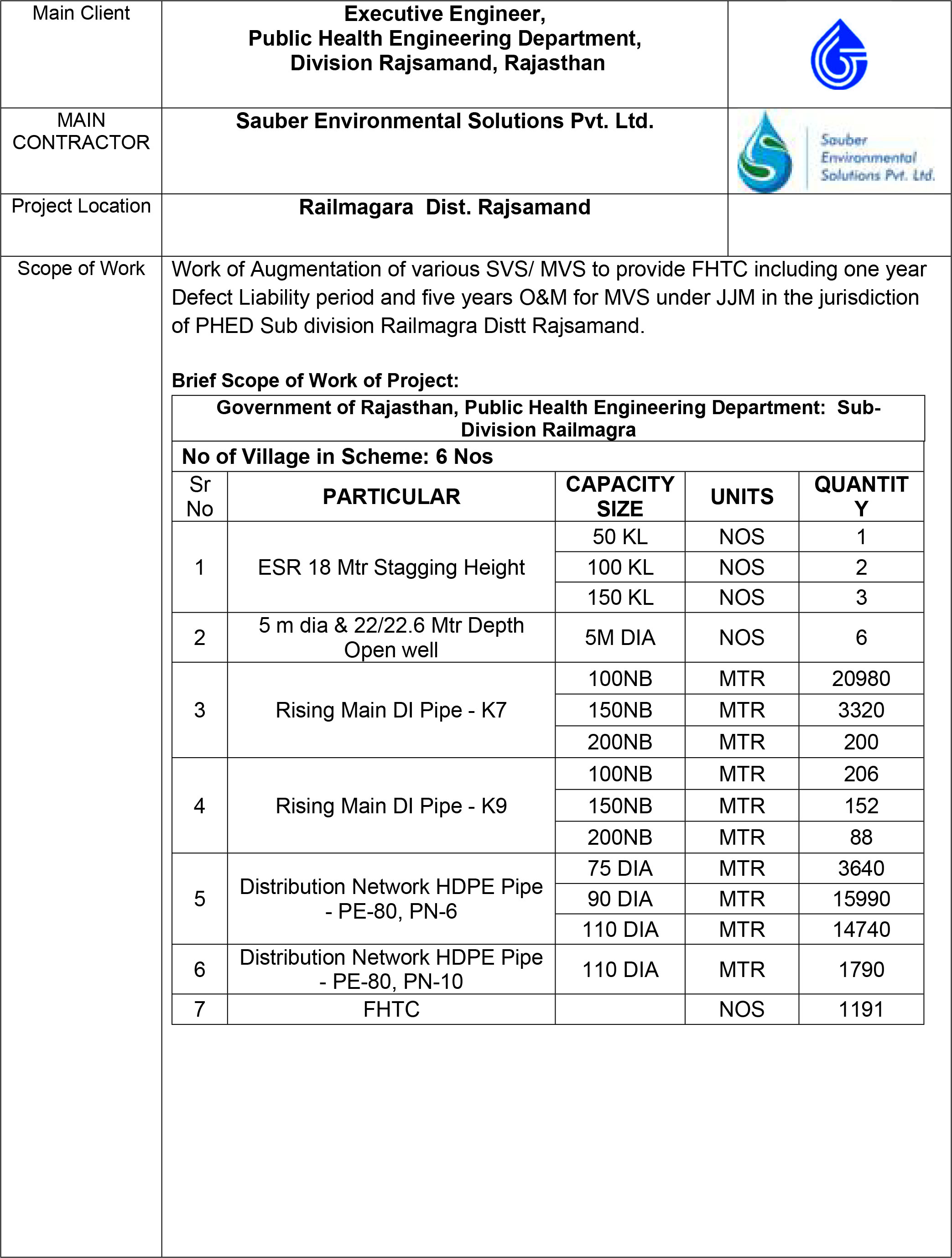 Public Health Engineering Department, Rajsamand Division – Water Supply Project